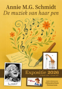 Van 8 februari 2026 tot en met 3 januari 2027 exposeert het Schoolmuseum Ootmarsum werk van Annie M.G. Schmidt. In deze tentoonstelling staat de muzikaliteit van Annie’s taal centraal. Haar pen schreef niet alleen verhalen, maar ook liedjes, versjes en teksten die ritme, klank en fantasie ademen. Van kinderboeken tot musicals en cabaret: Annie’s woorden blijven zingen.